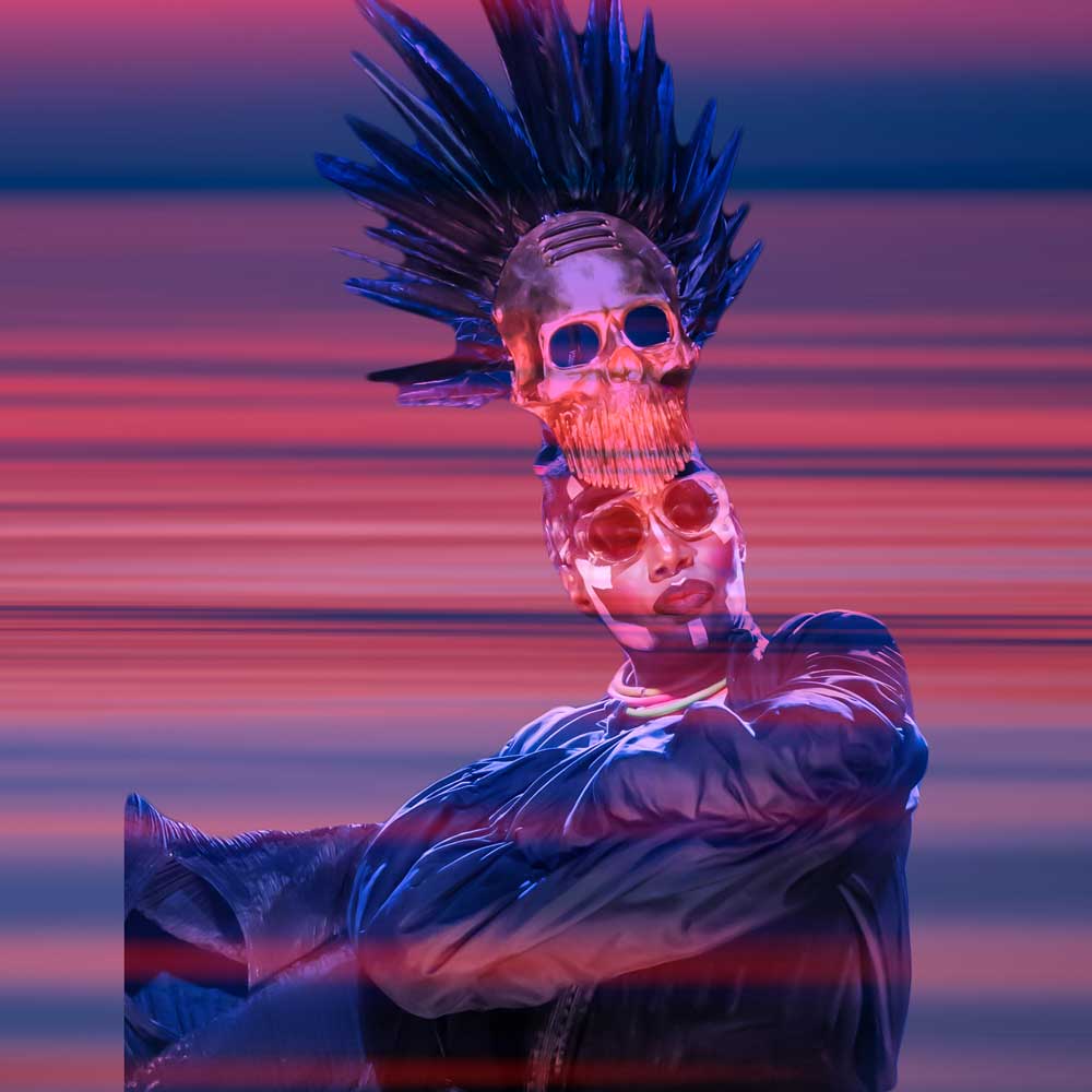 Sorcha Bridge’s vibrant photography showcases the spirit of icons like Grace Jones. Celebrating outrageous creativity, her work fuses original photographs with neon practice, hand-finished with gold leaf and neon screens.