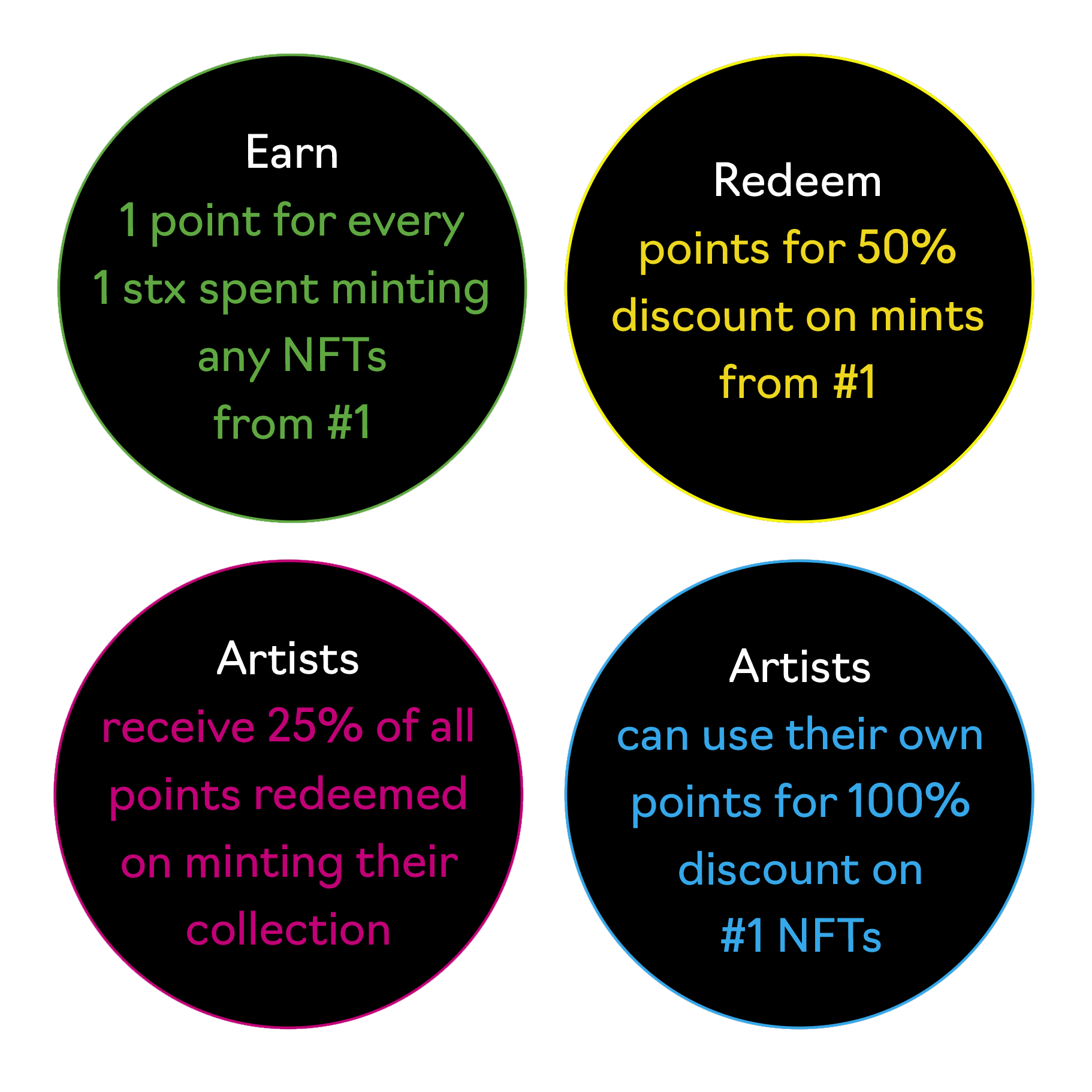 View your current #1 Loyalty Points balance by connecting your wallet and visiting your profile – My #1. Redeemable collections heading your way very soon. Be sure to follow us on our Discord Channel for announcements.